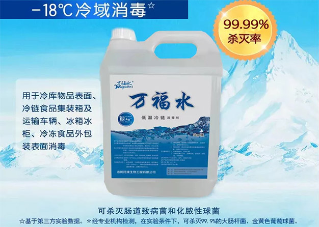 冷鏈食品檢測新冠病毒陽性屢見報端,讓人民意識到在冷鏈食品生產(chǎn)運輸中整個防控體系中,消毒殺菌環(huán)節(jié)是必不可少的。“萬福水低溫冷鏈消毒劑”完全勝任食品生產(chǎn)、包裝、貯運各個環(huán)節(jié)的消毒工作。冷鏈食品行業(yè)防控必要...